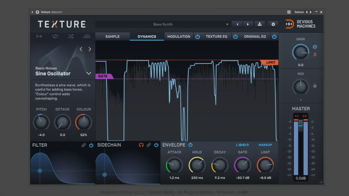 - Texture генерирует дополнительные звуковые слои, синхронизируя их с динамикой исходного сигнала, что особенно полезно при работе с ударными и синтезаторами.
