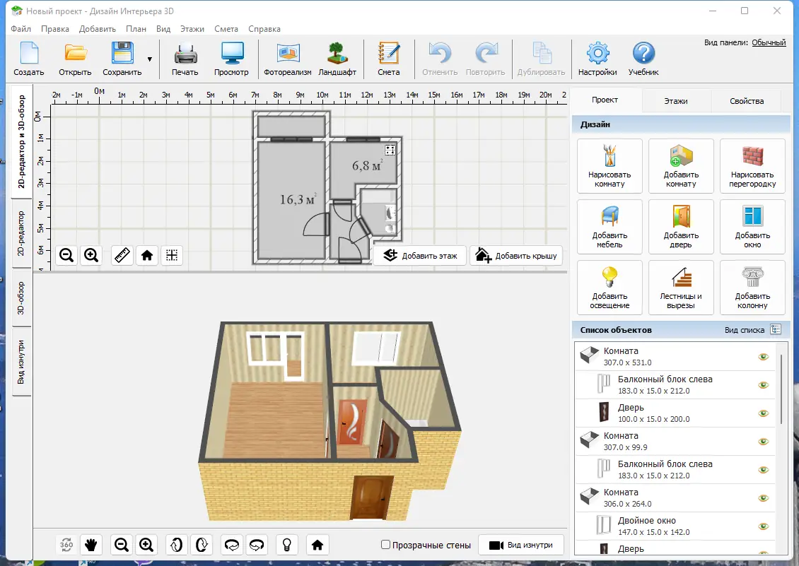Программа сочетает простоту использования с функциональностью профессиональных решений для проектирования интерьеров.