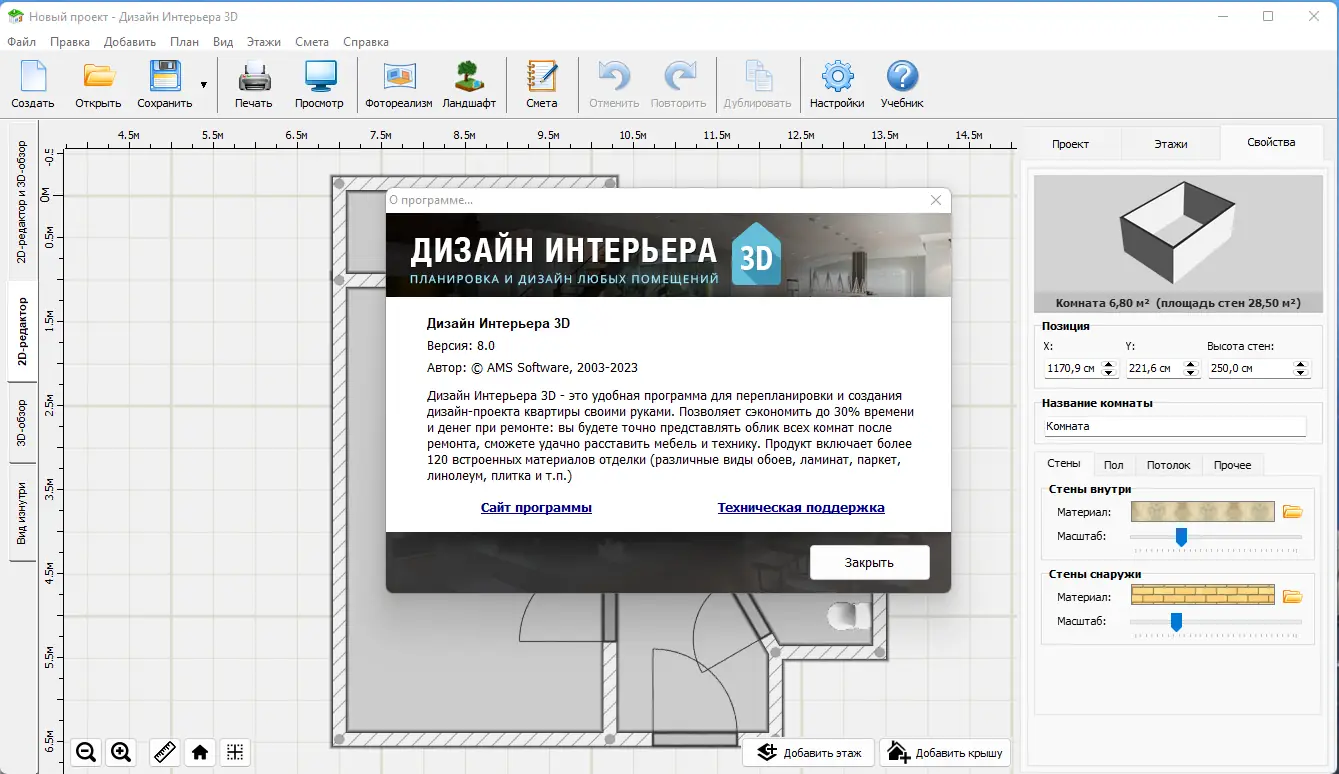 Программа предоставляет пользователям возможность проектировать интерьеры с высокой детализацией и точностью. Интерфейс интуитивно понятен, что делает процесс моделирования доступным даже новичкам. В составе приложения — обширная библиотека объектов, включая мебель, бытовую технику, осветительные приборы и элементы декора.