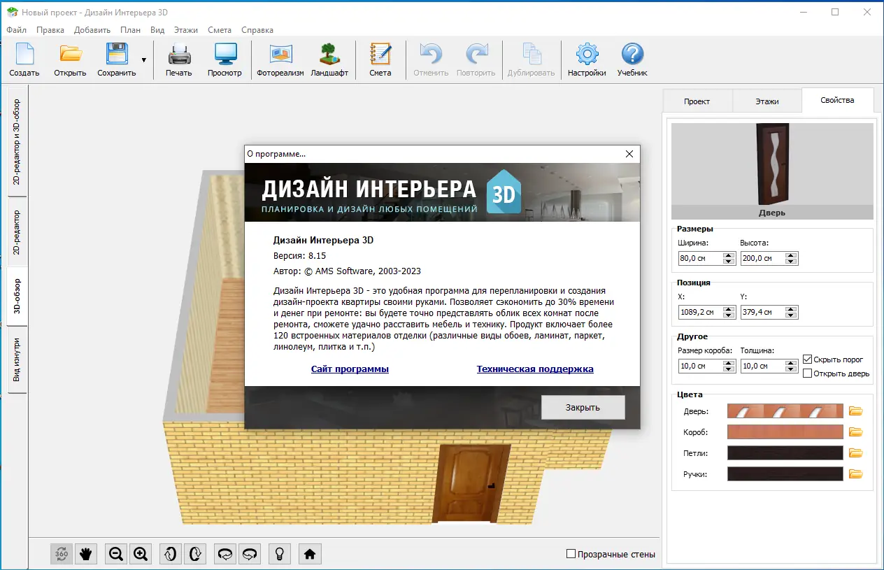 «Дизайн Интерьера 3D» — это программное обеспечение для моделирования интерьеров, ориентированное на пользователей без специального дизайнерского образования. Она сочетает в себе простоту интерфейса и функциональность, необходимую для создания детализированных проектов жилых и офисных помещений. Пользователи могут разрабатывать планировку с учетом реальных размеров комнат, добавлять мебель, технику, выбирать материалы отделки и просматривать результат в трехмерном виде.