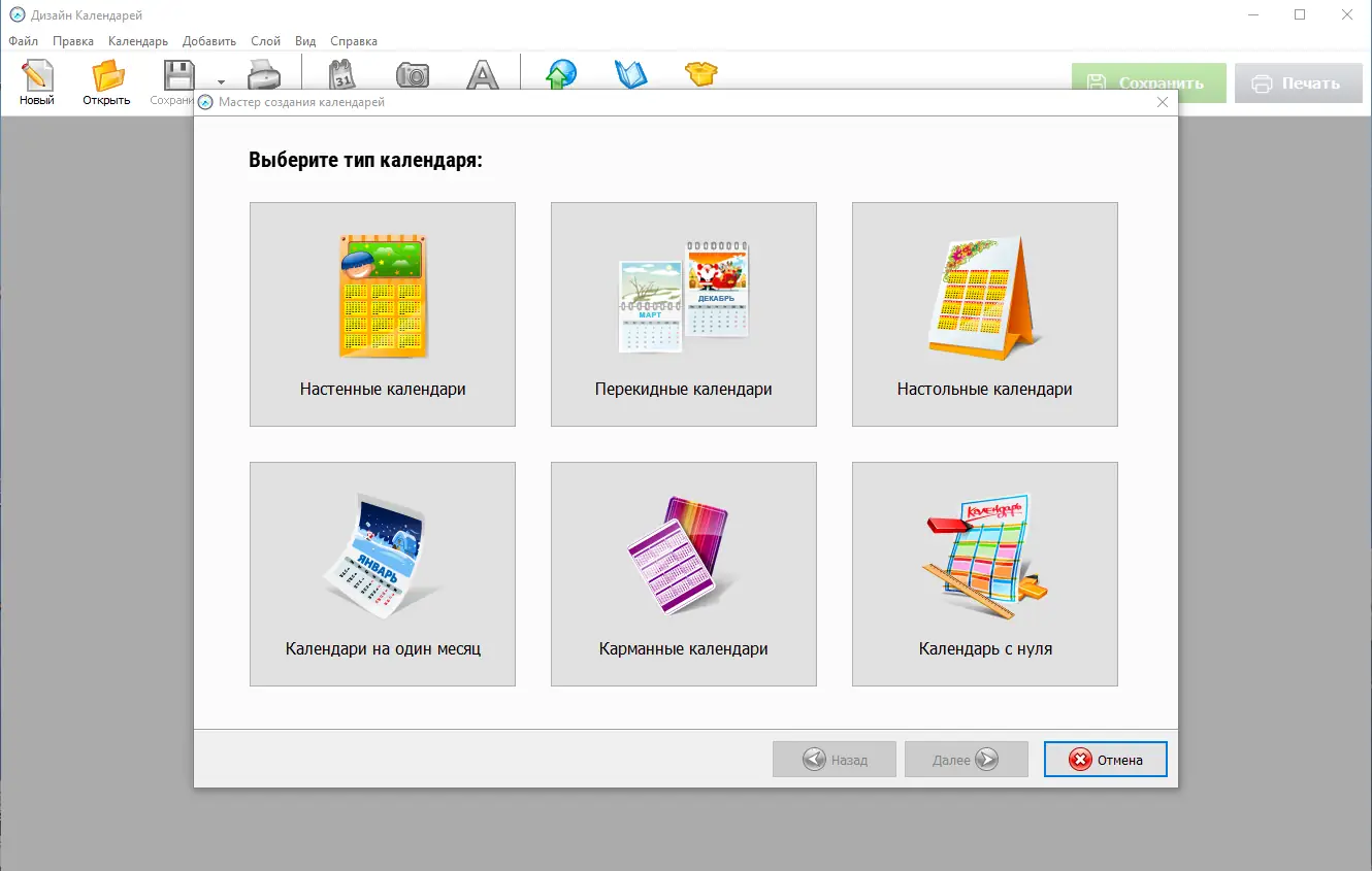 - Поддержка различных форматов: карманные, настольные, настенные и перекидные календари