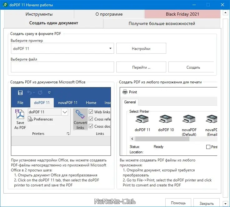 Программа doPDF добавляет в систему виртуальное печатающее устройство, которое не требует физического подключения, но позволяет сохранять документы в формате PDF. После установки достаточно открыть нужный файл и выбрать в меню печати doPDF как целевой принтер. Документ будет преобразован в PDF без потери качества и с возможностью последующего редактирования в других приложениях. Поддержка таких форматов, как DOCX, XLSX, PPTX, HTML и EML, расширяет сферу применения инструмента. Конвертация происходит быстро и не требует дополнительных действий со стороны пользователя. Программа совместима с современными версиями Windows, включая 10 и 7, а также поддерживает 64-битные и 32-битные системы.
