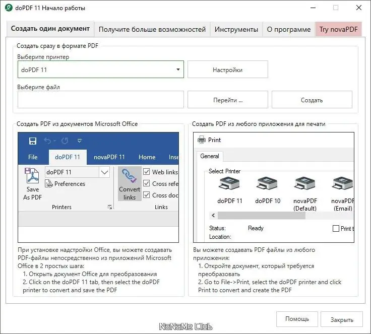doPDF — это легковесное приложение для преобразования документов в универсальный формат PDF, совместимое с широким спектром файлов, включая текстовые документы, электронные таблицы, презентации и веб-страницы. После установки программа добавляет в систему виртуальный принтер, позволяя конвертировать файлы в PDF через функцию печати. Решение подходит как для домашнего использования, так и для корпоративной среды, обеспечивая стабильность и простоту при сохранении качества вывода.