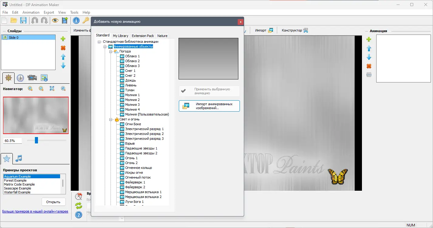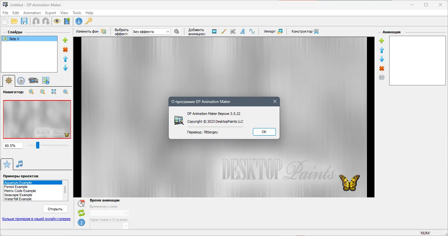 DP Animation Maker — это мощный инструмент для создания анимации из неподвижных изображений, ориентированный на простоту и визуальную выразительность. Программа позволяет оживлять объекты, добавлять динамику миру, который изначально был статичным, и передавать ощущение движения с минимальными усилиями. Благодаря интуитивному интерфейсу и разнообразию встроенных эффектов, пользователь может быстро получить профессиональный результат.
