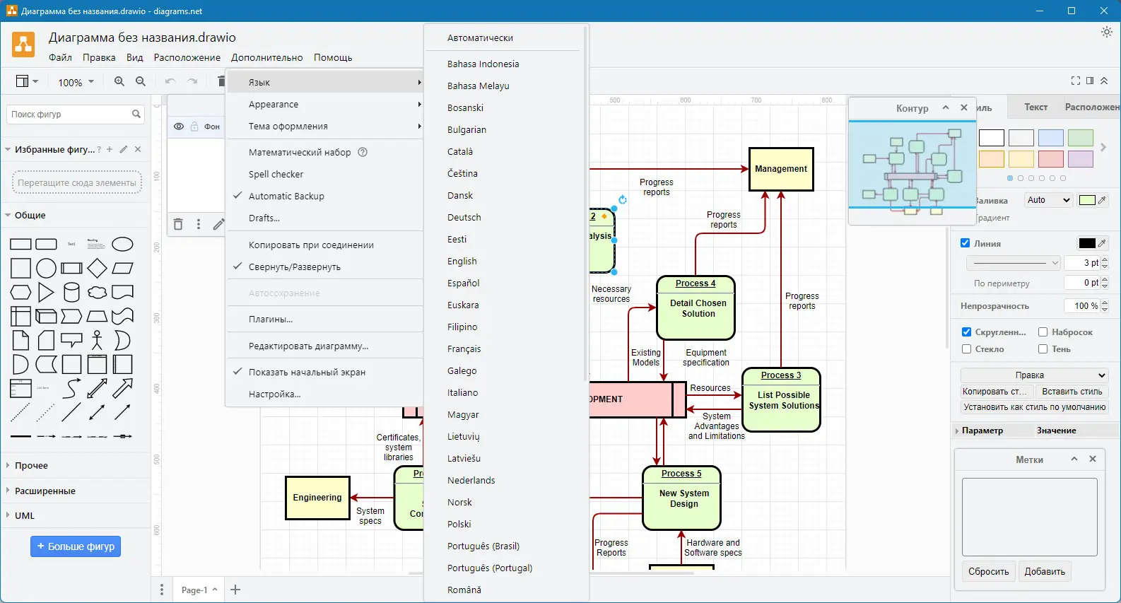 Draw.io — это инструмент для построения визуальных моделей, разработанный с акцентом на простоту и функциональность. Он изначально ориентирован на создание структурированных схем, которые помогают в проектировании систем, планировании процессов и обучении. Программа активно используется в образовательной среде, IT-сфере и управлении проектами. Её открытая архитектура позволяет интегрировать с другими сервисами и расширять функционал. Интерфейс остаётся стабильным и предсказуемым вне зависимости от сложности задачи.