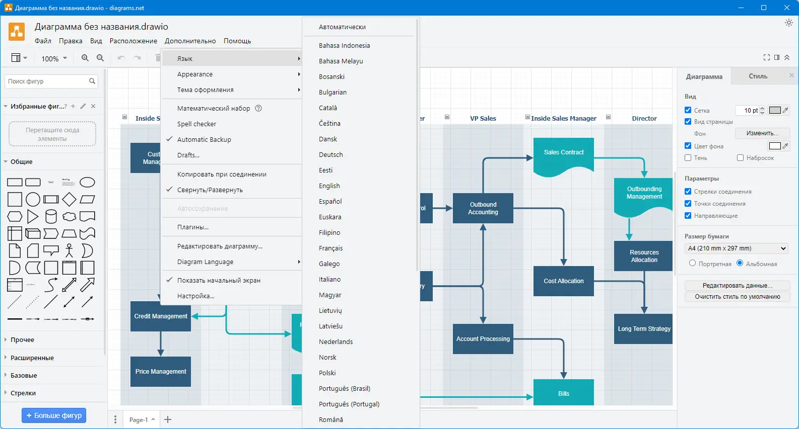 - Возможность экспорта в различные форматы, включая PNG, SVG и PDF