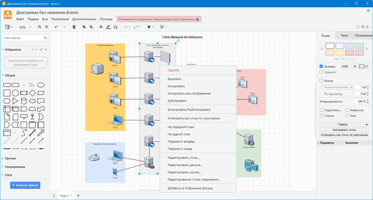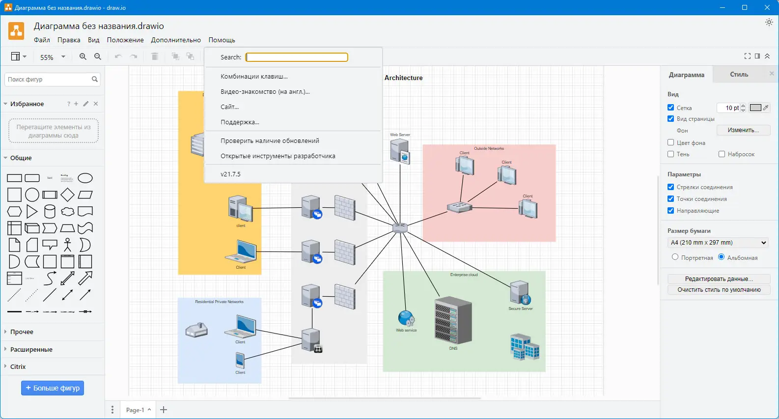 Draw.io — это бесплатное программное обеспечение для создания диаграмм, подходящее как для студентов, так и для профессионалов. Программа предлагает интуитивно понятный интерфейс, поддержку множества типов схем и возможность работы без установки на устройстве.