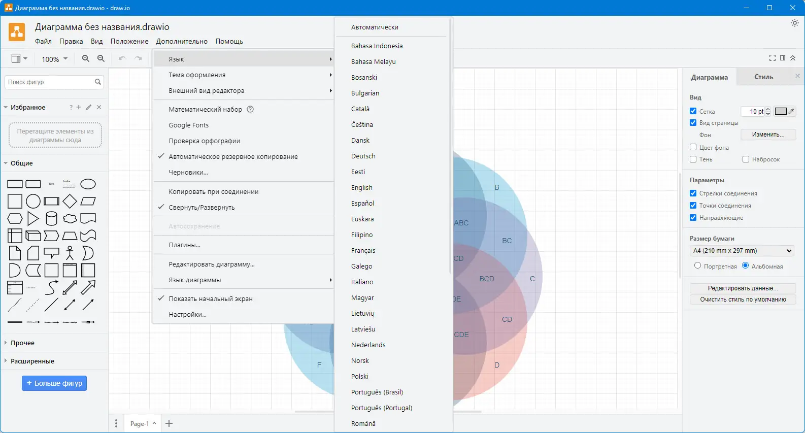 Использование Draw.io начинается с выбора типа диаграммы и шаблона. Интерфейс организован логично: панель инструментов находится слева, область редактирования — по центру, а справа отображаются свойства выбранных элементов. Пользователь может перетаскивать объекты, изменять их размер, цвет и стили. Поддерживается группировка, выравнивание и привязка к сетке. Приложение позволяет импортировать и экспортировать данные в различных форматах, включая PNG, SVG, XML и другие. Сохранение проекта возможно как локально, так и в облачных хранилищах, таких как Google Drive или OneDrive. Также доступна интеграция с Confluence и других платформах, что делает её удобной для командной работы. Работа с диаграммой последовательности или UML не требует дополнительных плагинов — всё уже встроено. Канбан-доска помогает в управлении задачами, а диаграмма Венна подходит для сравнения множеств. Сетевая диаграмма позволяет визуализировать топологию компьютерных сетей с высокой точностью.