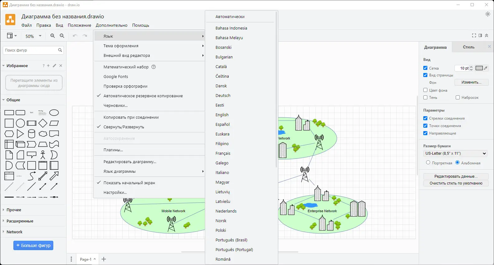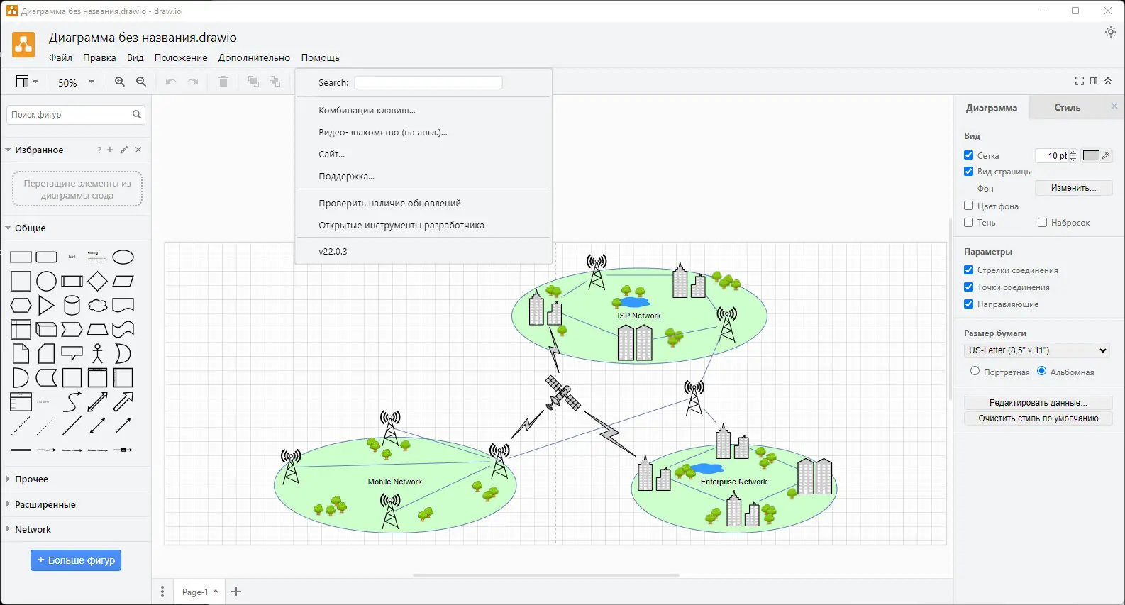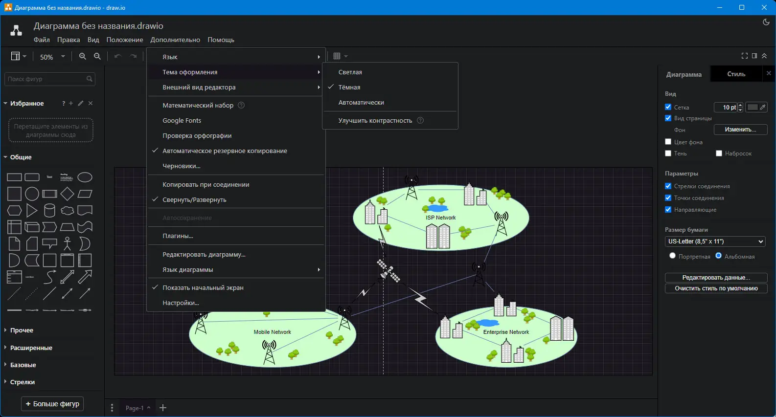 Draw.io представляет собой инструмент для проектирования и редактирования диаграмм, разработанный с акцентом на удобство и функциональность. Он функционирует как в виде веб-приложения, так и в качестве автономного программного обеспечения, что обеспечивает гибкость в использовании. Программа не требует сложной настройки и сразу готова к работе после запуска.