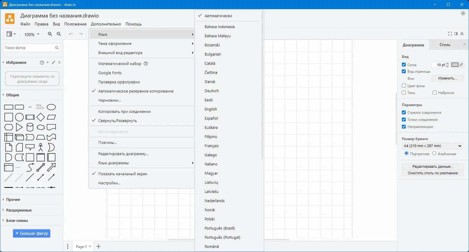 Работа с программой начинается с выбора типа диаграммы и загрузки одного из встроенных шаблонов. Пользователь может перетаскивать элементы с панели инструментов, соединять их стрелками, добавлять текст и изменять стили. Интерфейс построен по принципу drag-and-drop, что упрощает взаимодействие даже для тех, кто впервые сталкивается с подобными инструментами. Все изменения сохраняются автоматически, а проекты можно экспортировать в форматы PNG, SVG, PDF и XML.