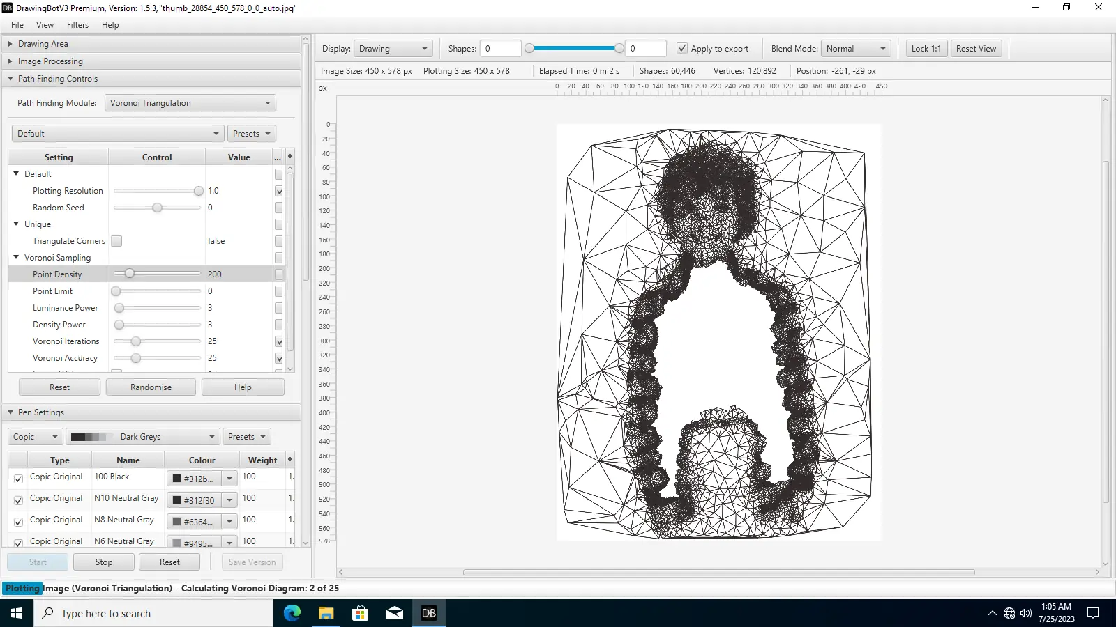 DrawingBotV3 представляет собой инструмент для генерации векторных и растровых рисунков на основе загруженных изображений или видео. Программа использует продвинутые алгоритмы обработки, чтобы превращать фотографии в стилизованные композиции, напоминающие ручную отрисовку. Она поддерживает множество режимов вывода, включая создание графики для плоттеров, цифровые изображения и векторные файлы.