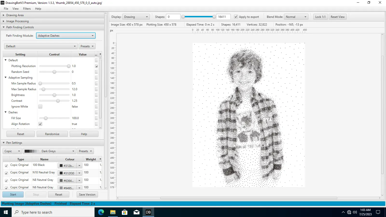 DrawingBotV3 — это программное обеспечение для преобразования изображений в художественные рисунки с использованием различных алгоритмов стилизации. Подходит для цифрового искусства, плоттерной графики, создания NFT и дизайнерских проектов. Обладает интуитивным интерфейсом и поддерживает широкий спектр форматов.
