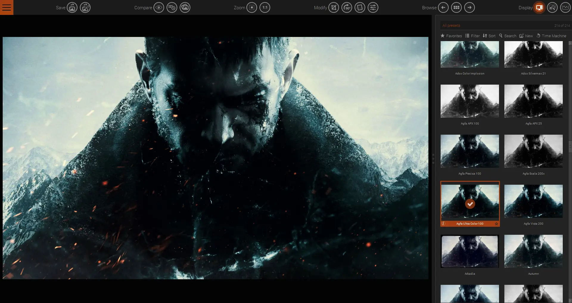 - В базе программы содержатся десятки профилей, имитирующих известные фотоплёнки, включая Kodachrome, Tri-X и другие легендарные материалы.