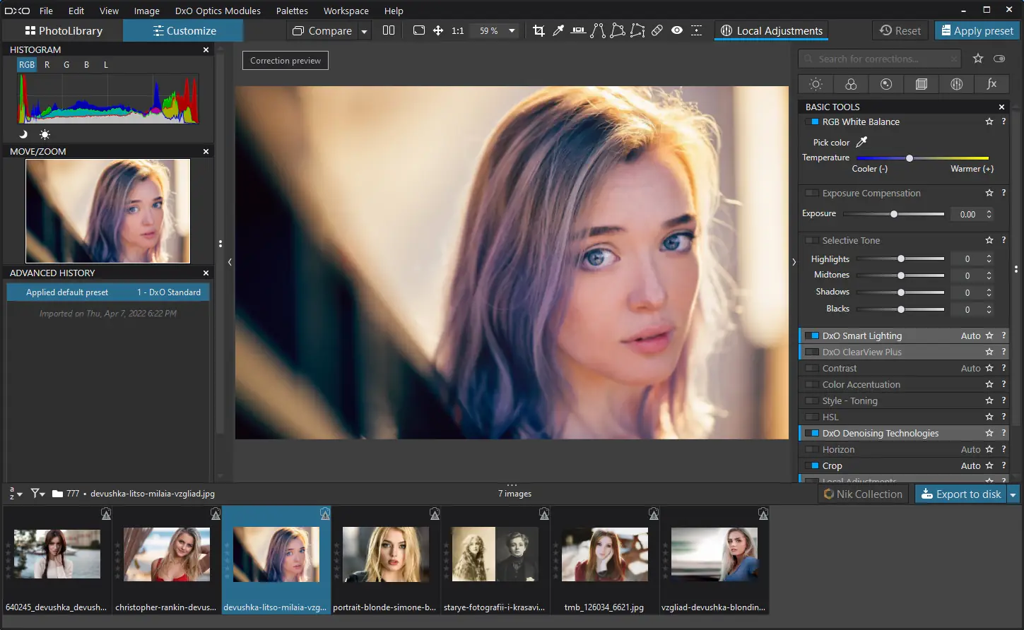 Мощный фоторедактор DxO PhotoLab предназначен для профессиональной обработки RAW и JPEG-изображений с высокой точностью и минимальными усилиями. Программа сочетает автоматические исправления на основе научных данных с гибкими ручными настройками, обеспечивая превосходное качество цветопередачи, шумоподавления и оптической коррекции.