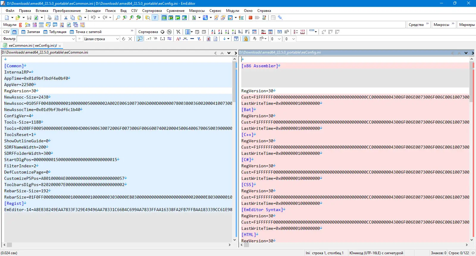 Использование Emurasoft EmEditor начинается с настройки окружения: выбор темы оформления, установка подсветки синтаксиса и настройка панелей инструментов. Через меню «Сервис» можно импортировать пользовательские темы с расширением .eetheme и настроить отображение в соответствии с предпочтениями, например, выбрать тёмную цветовую схему для снижения нагрузки на глаза. Подсветка синтаксиса для конкретных типов файлов настраивается через «Определить конфигурации», где можно импортировать файлы .esy, содержащие правила раскраски. Для автоматизации задач доступны макросы: их можно записывать, редактировать и запускать с помощью встроенной панели. Работа с большими файлами упрощена благодаря оптимизированному открытию и фоновому контролю изменений. Редактор поддерживает вертикальное выделение, панорамирование с помощью колеса мыши, а также синхронную прокрутку при сравнении документов.
