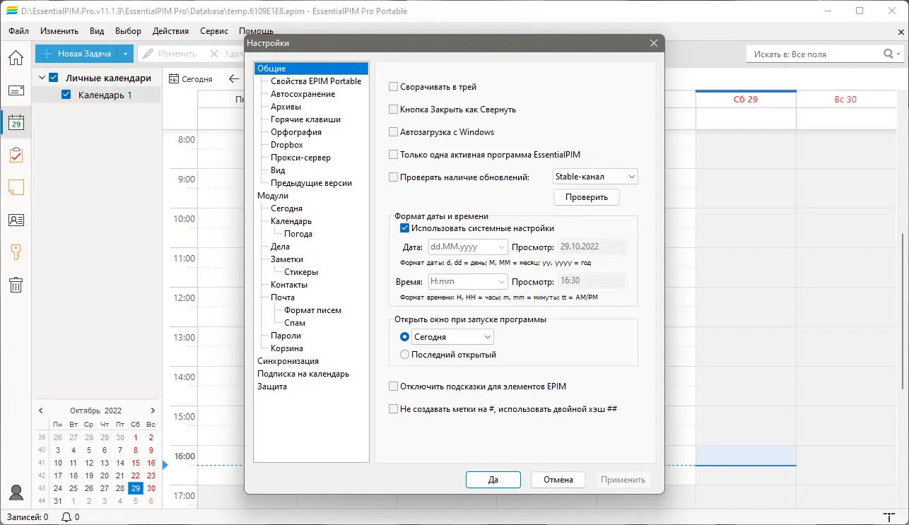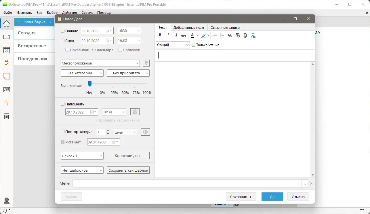 Использование EssentialPIM начинается с настройки основных модулей: ежедневника, задач, заметок и контактов. Каждый элемент можно структурировать с помощью категорий, приоритетов и напоминаний. Работа с календарём позволяет визуализировать расписание на день, неделю или месяц, а drag-and-drop упрощает перенос событий. В модуле задач реализована древовидная структура, что удобно для управления проектами с подзадачами.