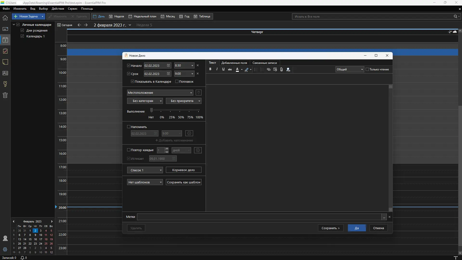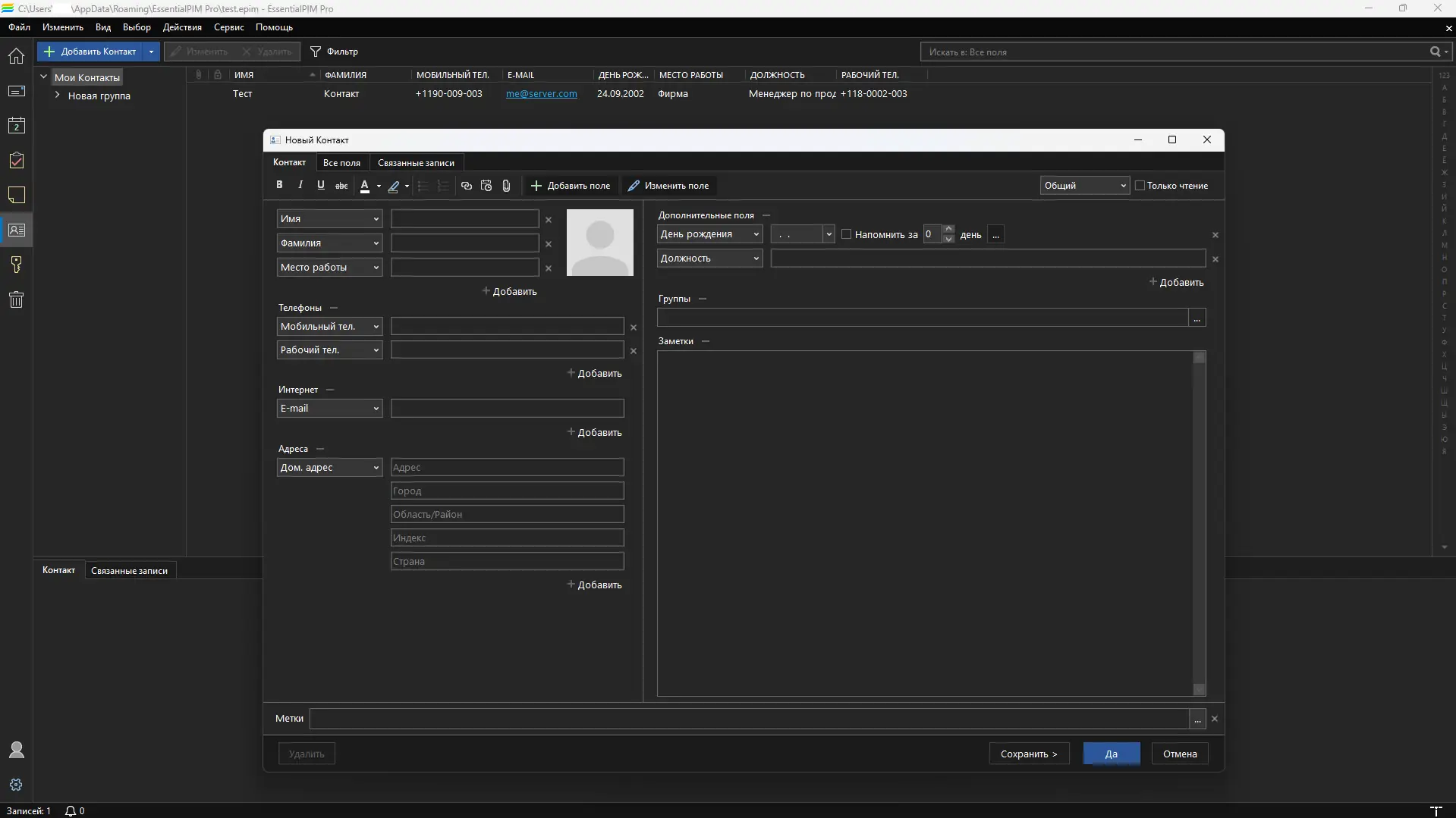 EssentialPIM Pro предлагает расширенные функции, включая многопользовательский доступ, синхронизацию с мобильными устройствами и комплексное резервное копирование.