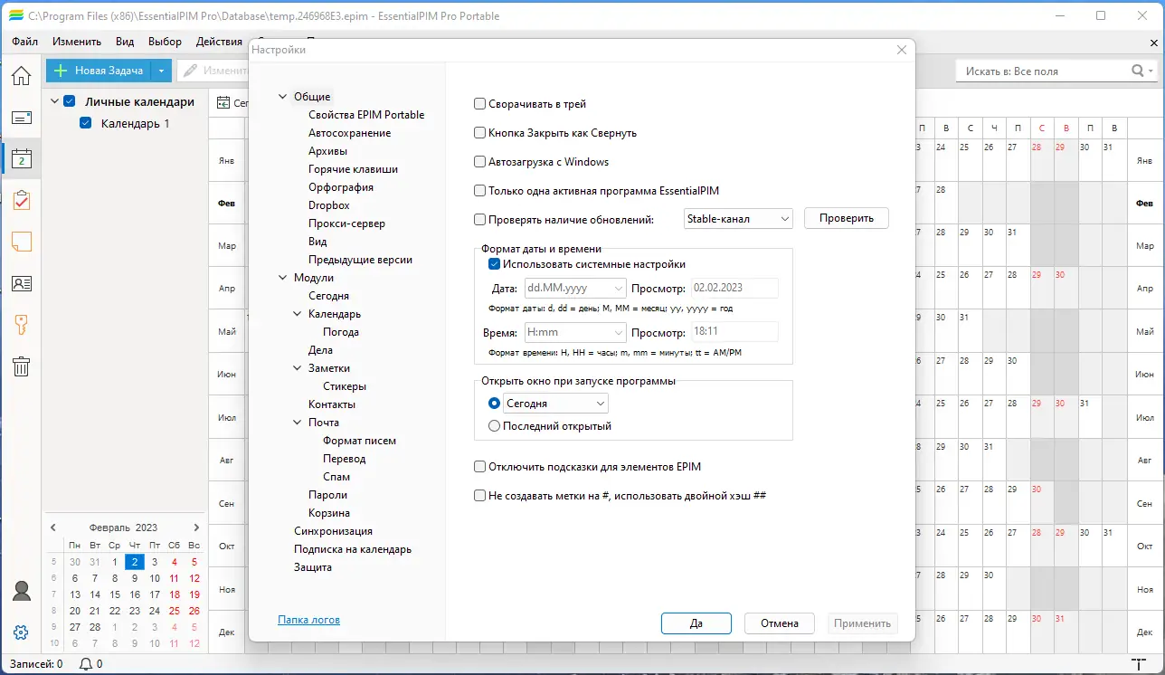 Работа с EssentialPIM