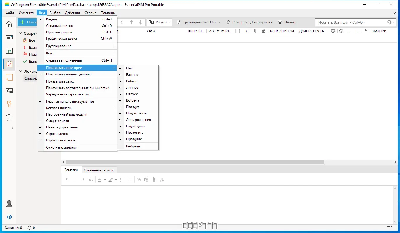 Работа с EssentialPIM