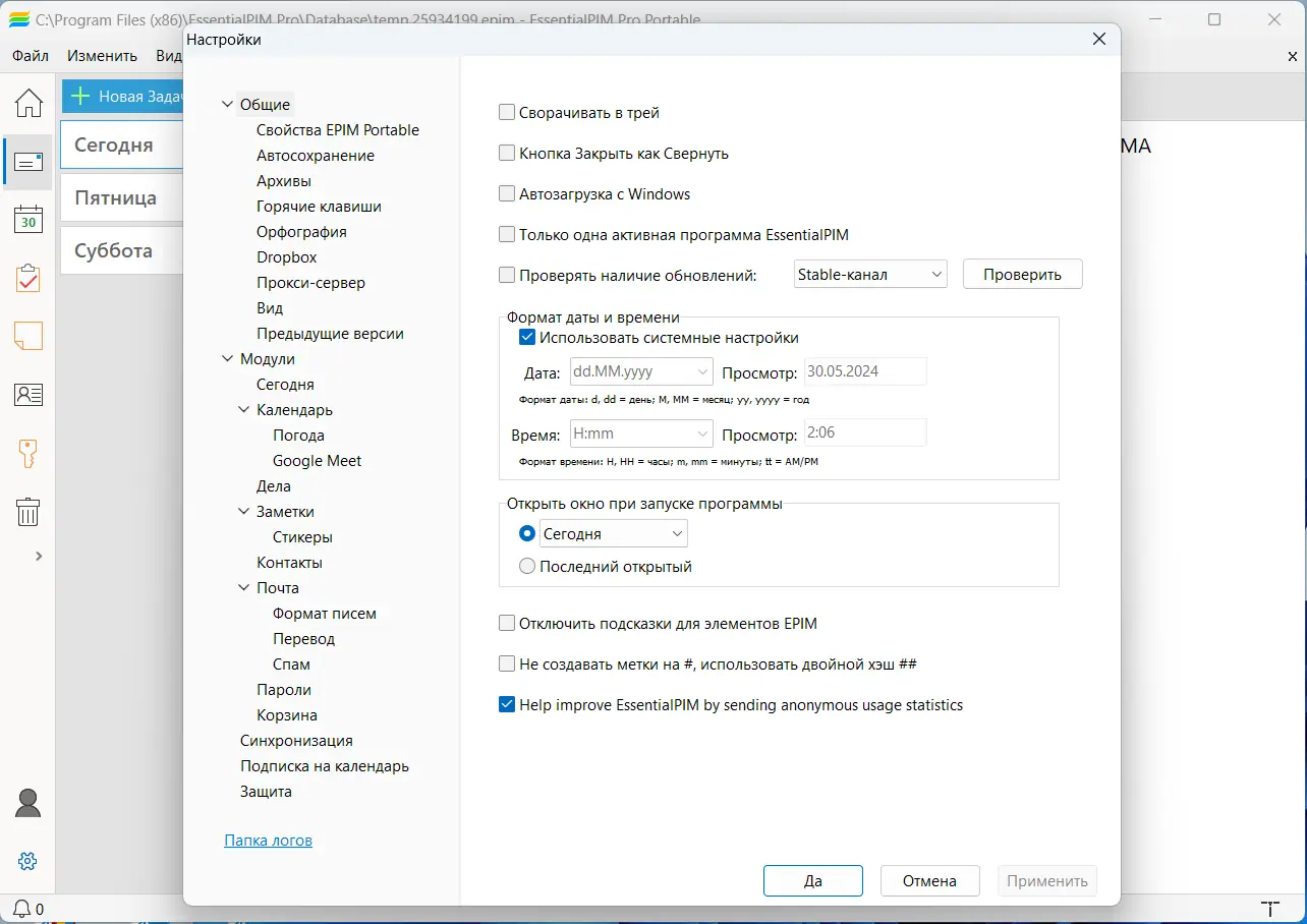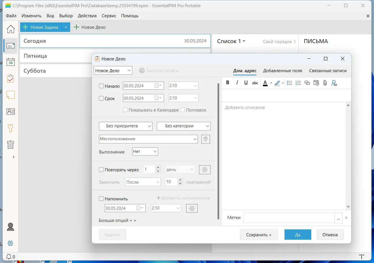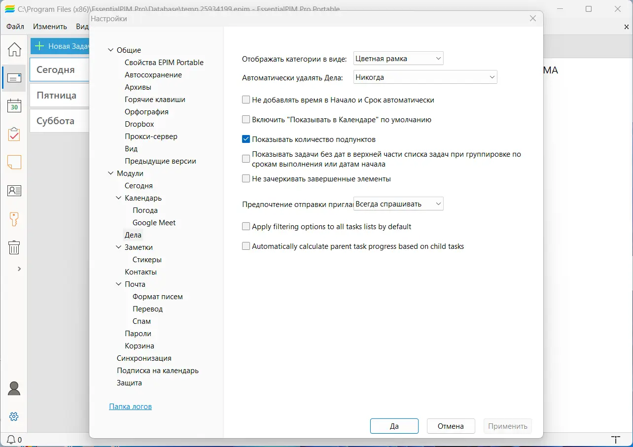 Работа с EssentialPIM