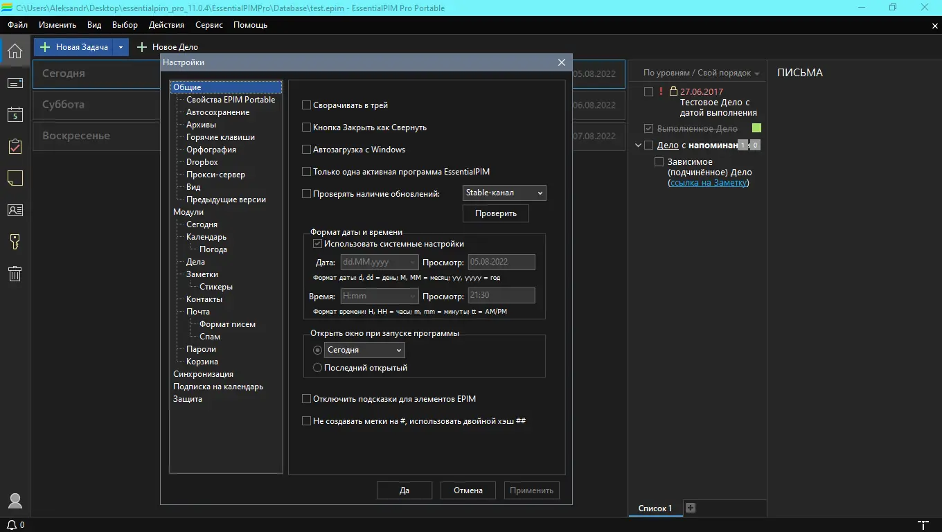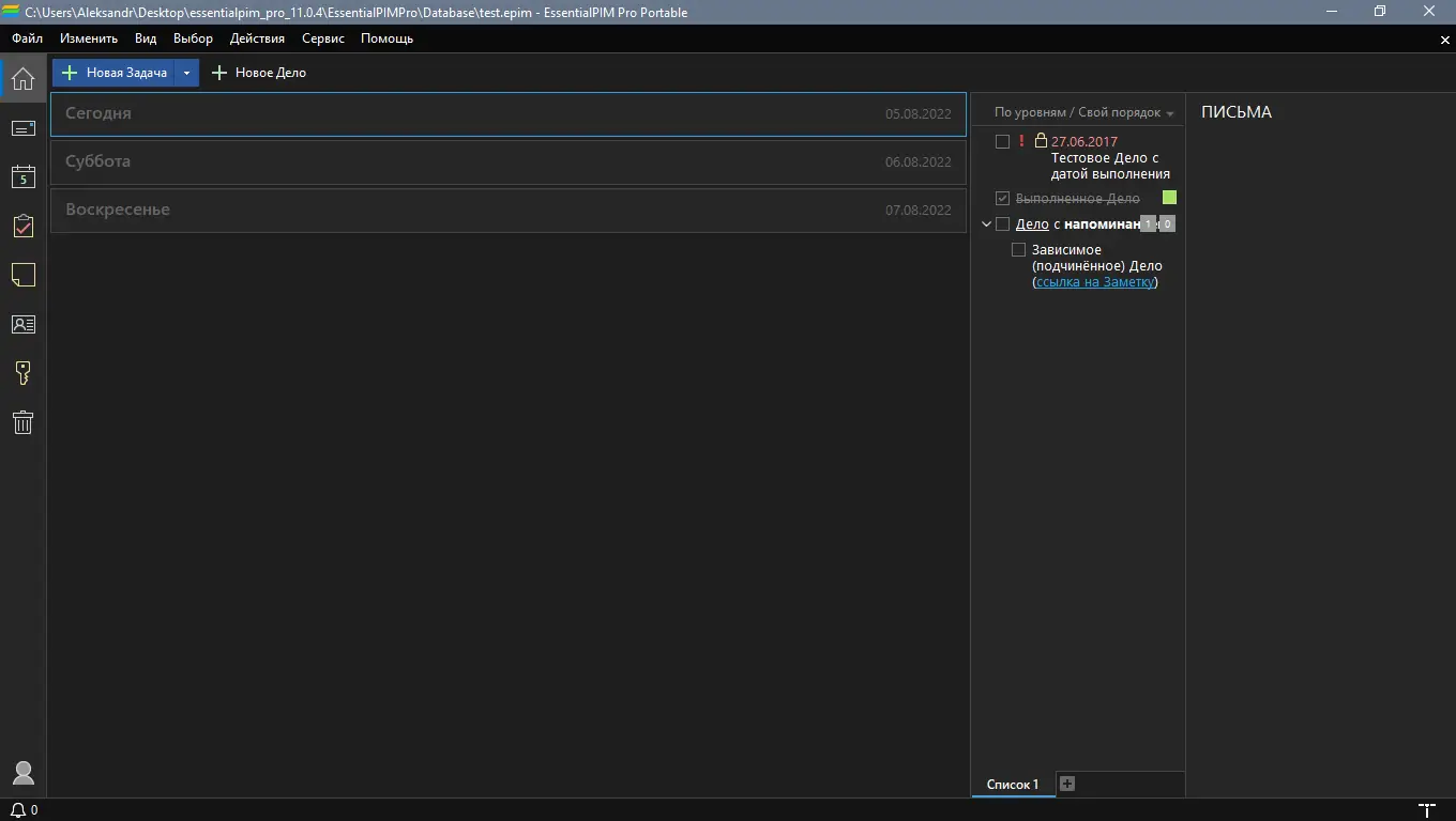 EssentialPIM предлагает широкий набор инструментов для организации повседневной деятельности, при этом сохраняя баланс между функциональностью и простотой. Программа поддерживает многоуровневую структуру данных, что особенно полезно при работе с большими объёмами информации. При этом она остаётся отзывчивой и не перегружает систему.