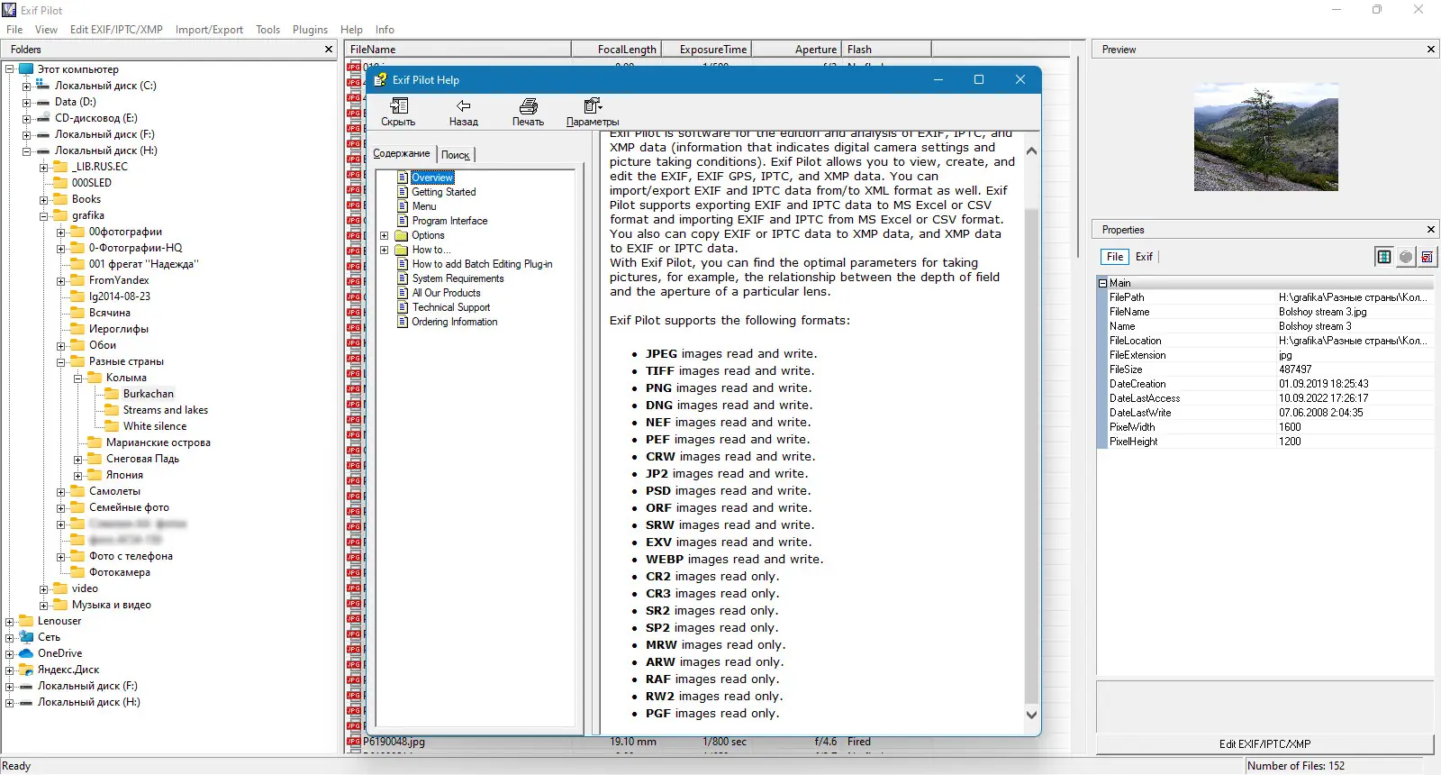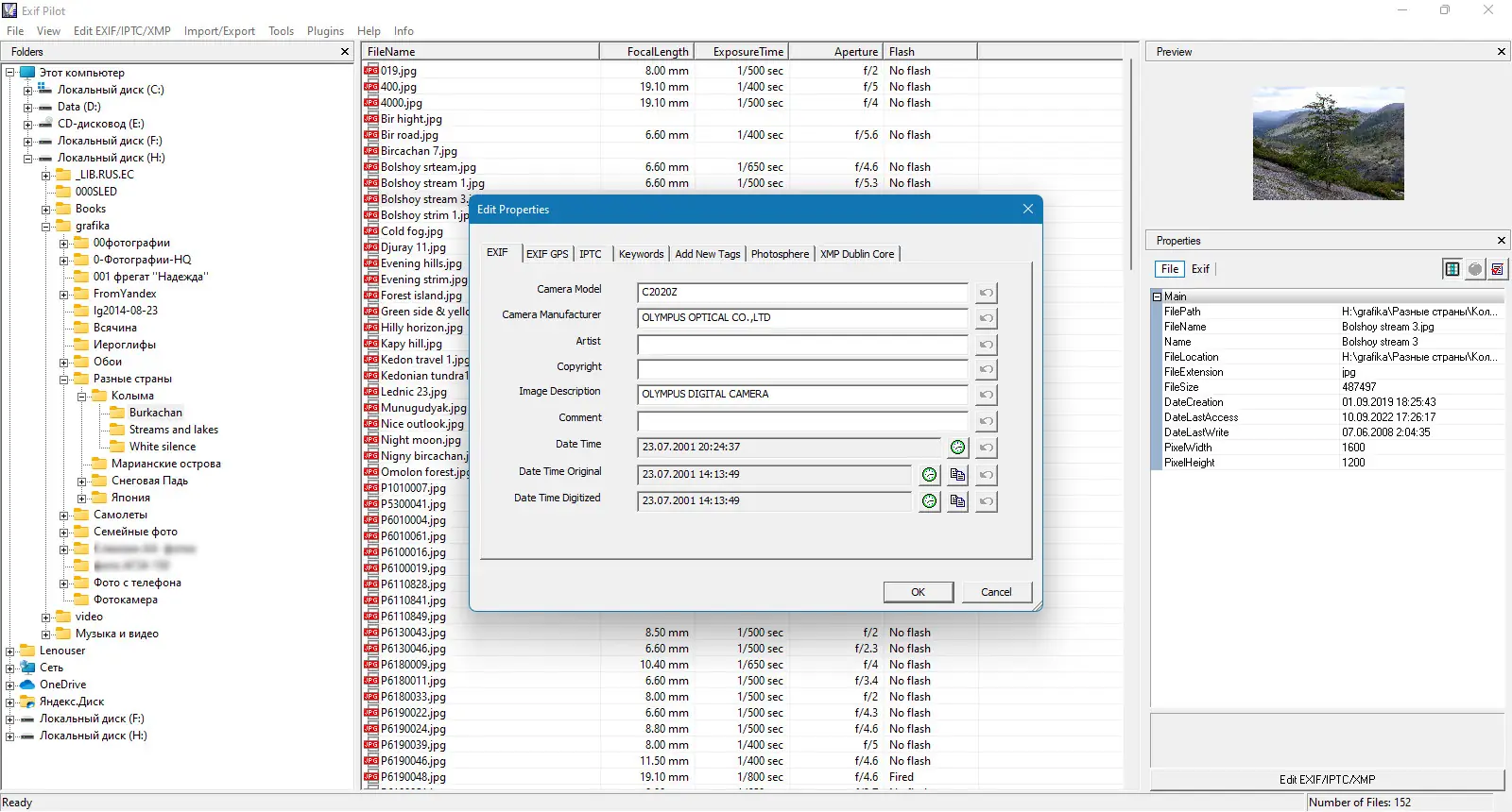 - Программа работает с EXIF, EXIF GPS, IPTC и XMP данными, обеспечивая полный цикл управления метаинформацией.