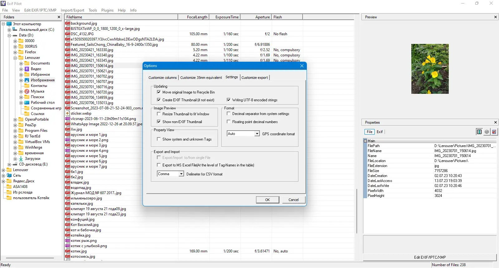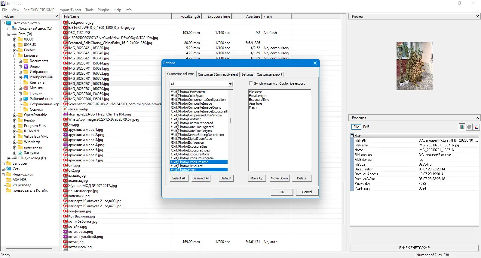 Работа с Exif Pilot