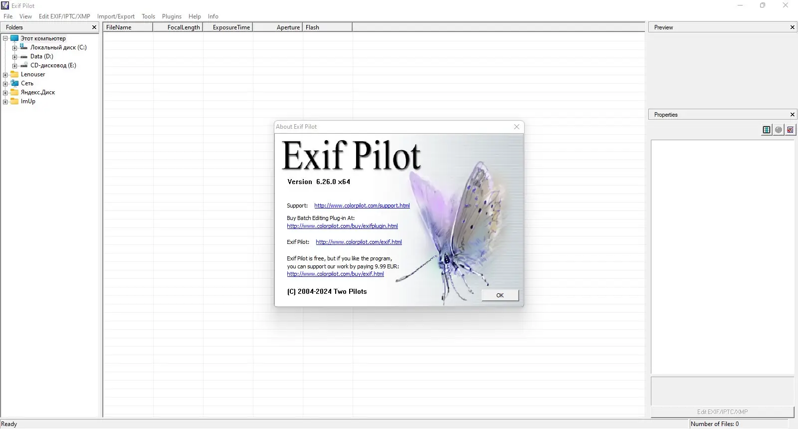 Exif Pilot — это мощный редактор метаданных, ориентированный на обработку технической информации, встроенной в изображения. Программа позволяет не только просматривать EXIF-теги, но и изменять их, добавлять новые или удалять ненужные. Особенно полезной функцией является поддержка панорамных сферических изображений, где можно настраивать метаданные Photo Sphere для корректного отображения в сервисах вроде Google Street View.