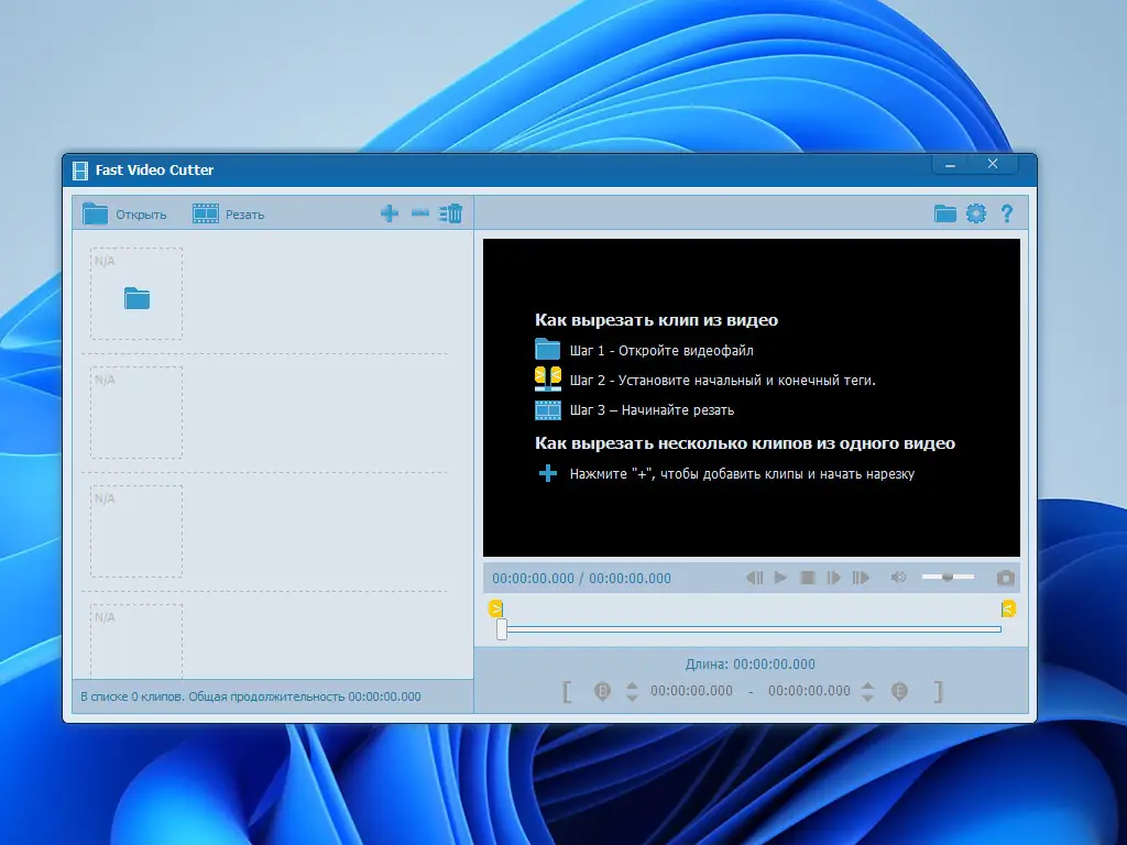 Программа не перекодирует видео при обрезке, что гарантирует отсутствие потерь в качестве и минимальное время обработки.