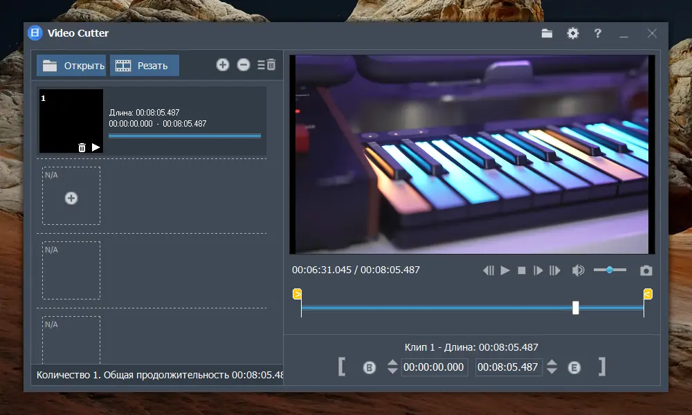 Использование программы не требует специальных знаний. После запуска достаточно перетащить видеофайл в рабочую область или воспользоваться кнопкой добавления. С помощью ползунка вы устанавливаете начальную и конечную точку вырезаемого фрагмента. При необходимости можно добавить несколько временных меток для извлечения отдельных сцен. Для объединения файлов нужно добавить их в список, расположить в нужном порядке и запустить процесс склейки. Результат сохраняется в выбранном формате без необходимости дополнительной настройки.
