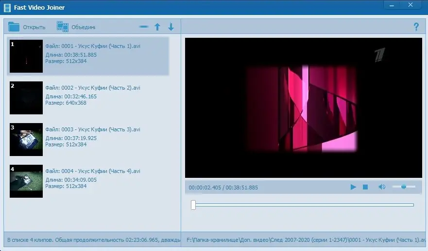 - Слияние файлов в единый поток без потери качества изображения и звука.