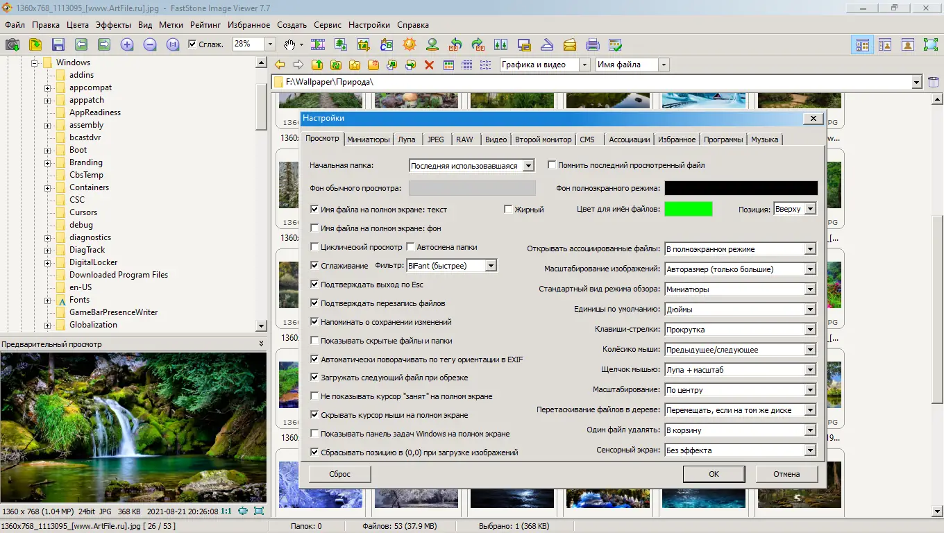 FastStone Image Viewer демонстрирует высокую производительность и широкие возможности при минимальных требованиях к системе. Программа быстро загружает изображения, включая тяжёлые RAW-файлы и HEIC, благодаря оптимизированному движку. Интерфейс остаётся отзывчивым даже при работе с большими папками. Поддержка внешних плагинов и интеграция с проводником Windows повышают удобство. В то же время, несмотря на богатый функционал, приложение остаётся лёгким и не нагружает систему.