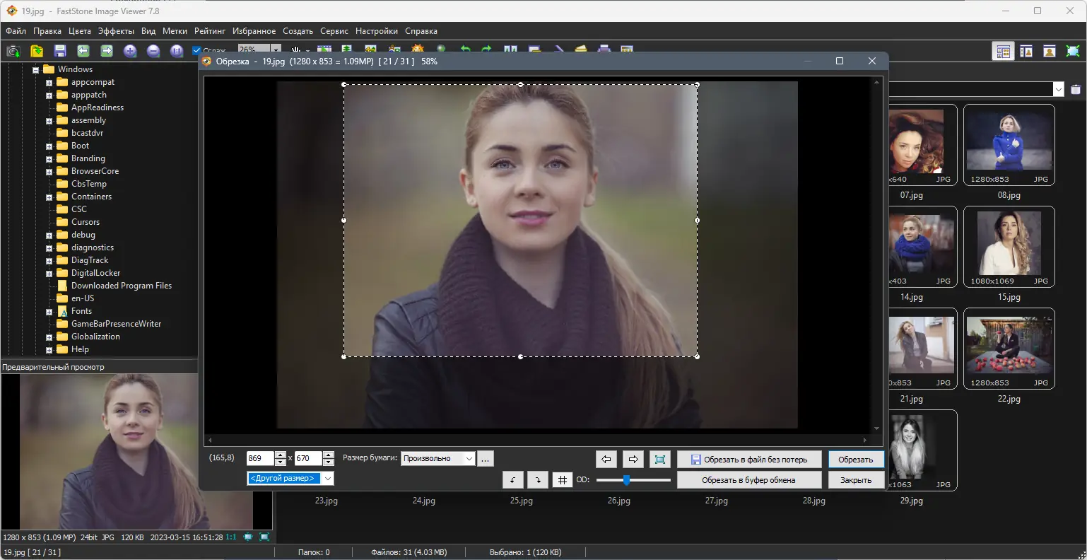 Использование FastStone Image Viewer не требует специальных навыков. После запуска открывается файловый менеджер, позволяющий быстро находить и открывать изображения. Управление осуществляется как с помощью мыши, так и через горячие клавиши, что ускоряет навигацию. Увеличение и уменьшение выполняется колесом мыши или через панель масштабирования. Для редактирования изображений доступен набор инструментов: можно обрезать картинку, изменить яркость, контраст, насыщенность, применить фильтры или добавить водяной знак. Пакетная обработка запускается через отдельное меню, где указываются параметры изменения размера, формат вывода и правила переименования. Слайд-шоу настраивается с выбором эффектов, интервалов и аудиодорожки. Все действия можно отменить благодаря многоуровневой системе отката.