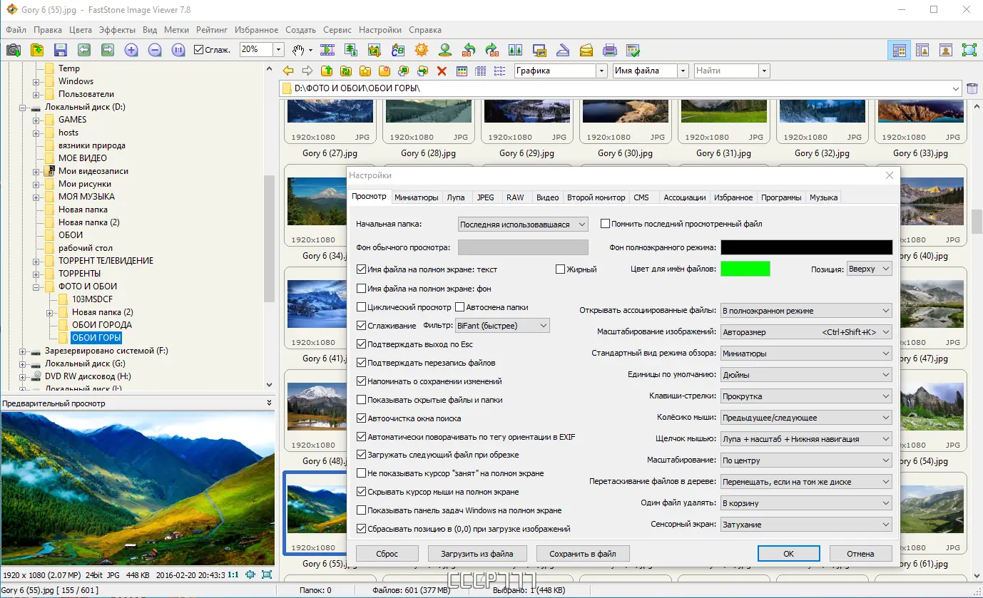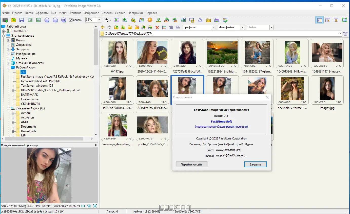 FastStone Image Viewer — это многофункциональный графический просмотрщик, разработанный для быстрой навигации по коллекциям изображений и выполнения базовых редакторских задач. Программа поддерживает широкий спектр форматов, включая JPEG, PNG, TIFF, GIF, BMP, RAW и новые форматы, такие как AVIF. Интерфейс ориентирован на скорость и удобство: изображения открываются мгновенно, даже при работе с крупными RAW-файлами. Наличие полноэкранного режима, плавного масштабирования и функции предварительного просмотра в боковой панели делает работу с большими архивами максимально эффективной.