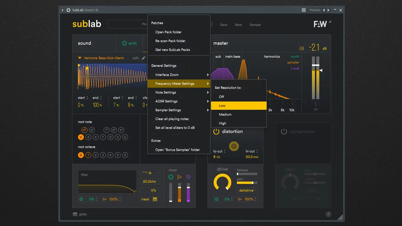 FAW SubLab — это передовой синтезатор, разработанный для создания плотного и насыщенного саб-баса, идеально подходящего для хип-хопа, трэпа и фьючер-баса. Инструмент сочетает в себе мощный движок, качественные сэмплы и технологию X-Sub™, обеспечивающую глубокое звучание на любых акустических системах. Программа позволяет быстро генерировать басы в стиле 808 с минимальными усилиями.