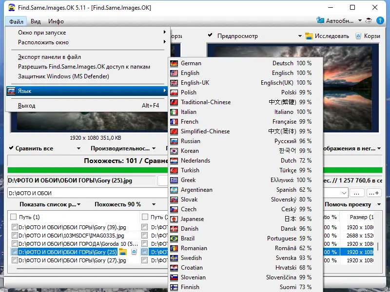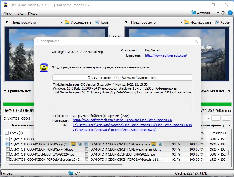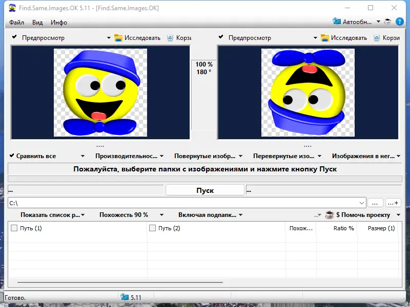 Find Same Images — это инструмент для поиска одинаковых и визуально схожих изображений, включая зеркальные, повернутые и масштабированные копии. Программа эффективно анализирует графическое содержимое, позволяя освободить дисковое пространство и оптимизировать хранение фото и картинок.