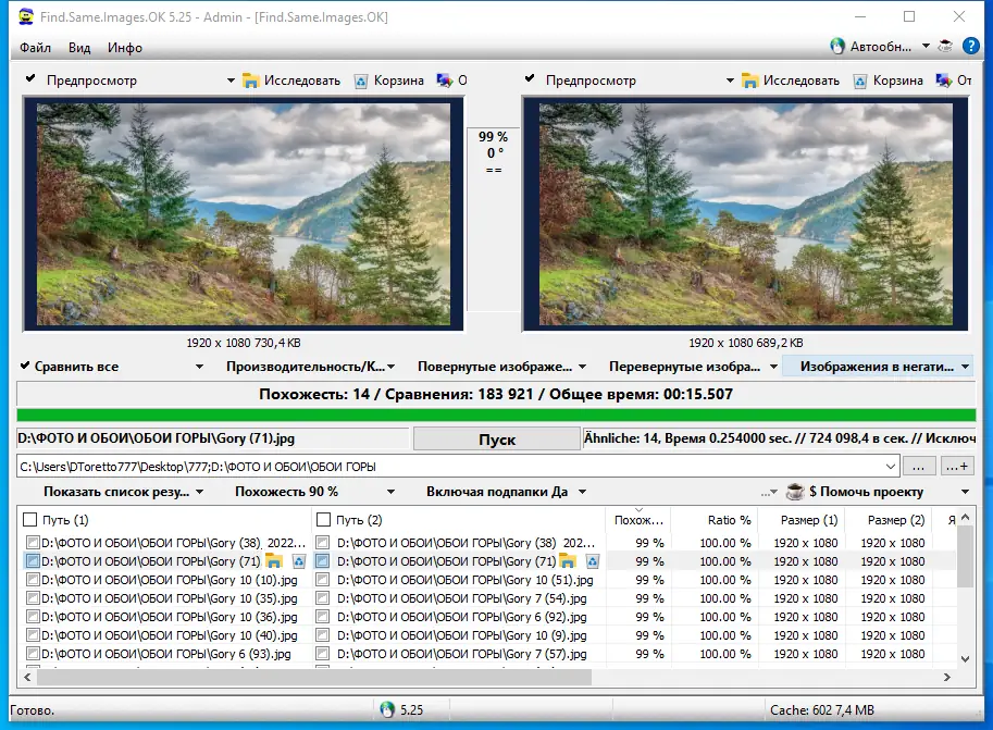 Использование приложения не требует специальных навыков. Достаточно указать папки для сканирования, выбрать параметры поиска — например, уровень схожести, необходимость проверки поворотов или зеркальных отражений — и запустить анализ. После завершения процесса программа отображает результаты в виде групп похожих изображений, позволяя пользователю вручную выбрать, какие файлы оставить, а какие удалить. Интерфейс интуитивно понятен, поддерживает русский язык и адаптирован под работу с большими объёмами данных. ok как работать с инструментом — просто и быстро, даже для новичков.