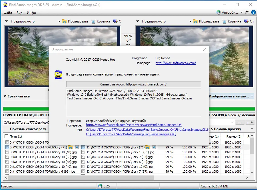 Find Same Images доступна для бесплатного скачивания и может использоваться как стационарно, так и в портативном режиме. Программа совместима с актуальными версиями Windows и не требует сложной настройки. После установки или распаковки можно сразу приступать к поиску дубликатов и оптимизации хранилища изображений. ok