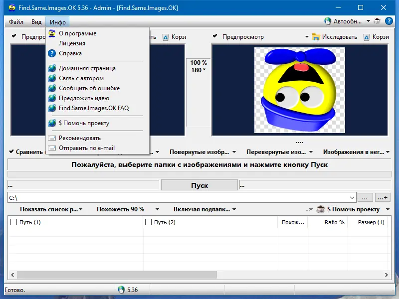 Программа использует продвинутый алгоритм сравнения пикселей, позволяя находить совпадения даже при изменении размера, ориентации или цветовой гаммы изображений.