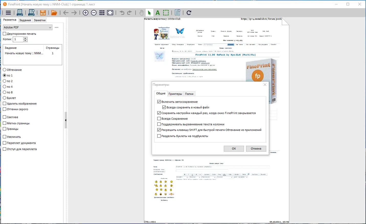 - Даёт возможность настраивать двустороннюю печать и формировать буклеты