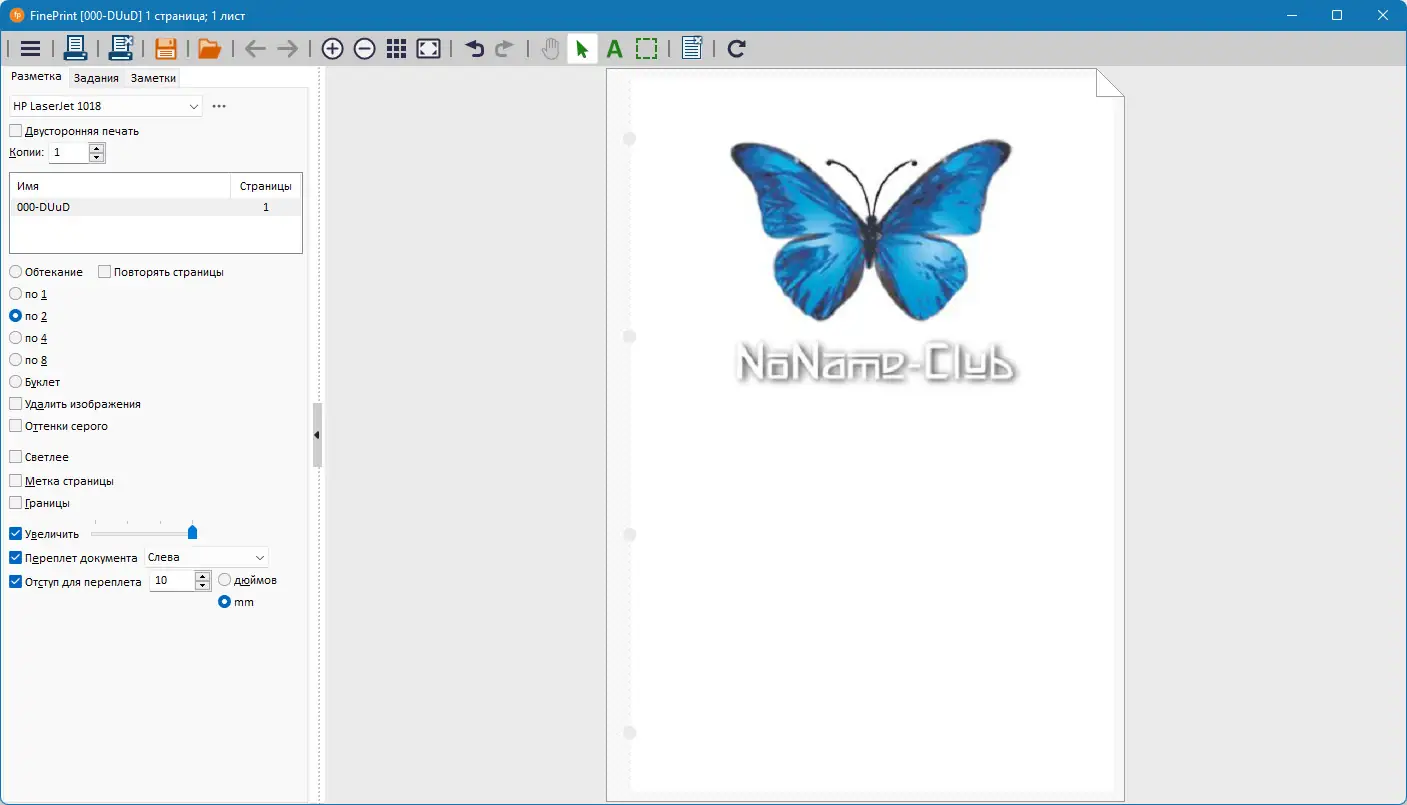 - Печать нескольких страниц на одном листе для экономии бумаги и ускорения вывода
