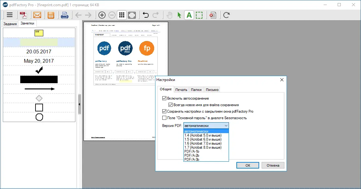 - Поддержка создания PDF через встроенный драйвер pdfFactory Pro