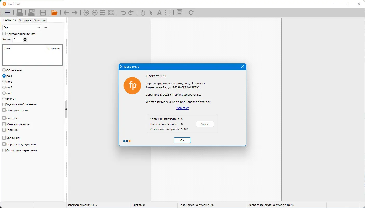 Работа с FinePrint