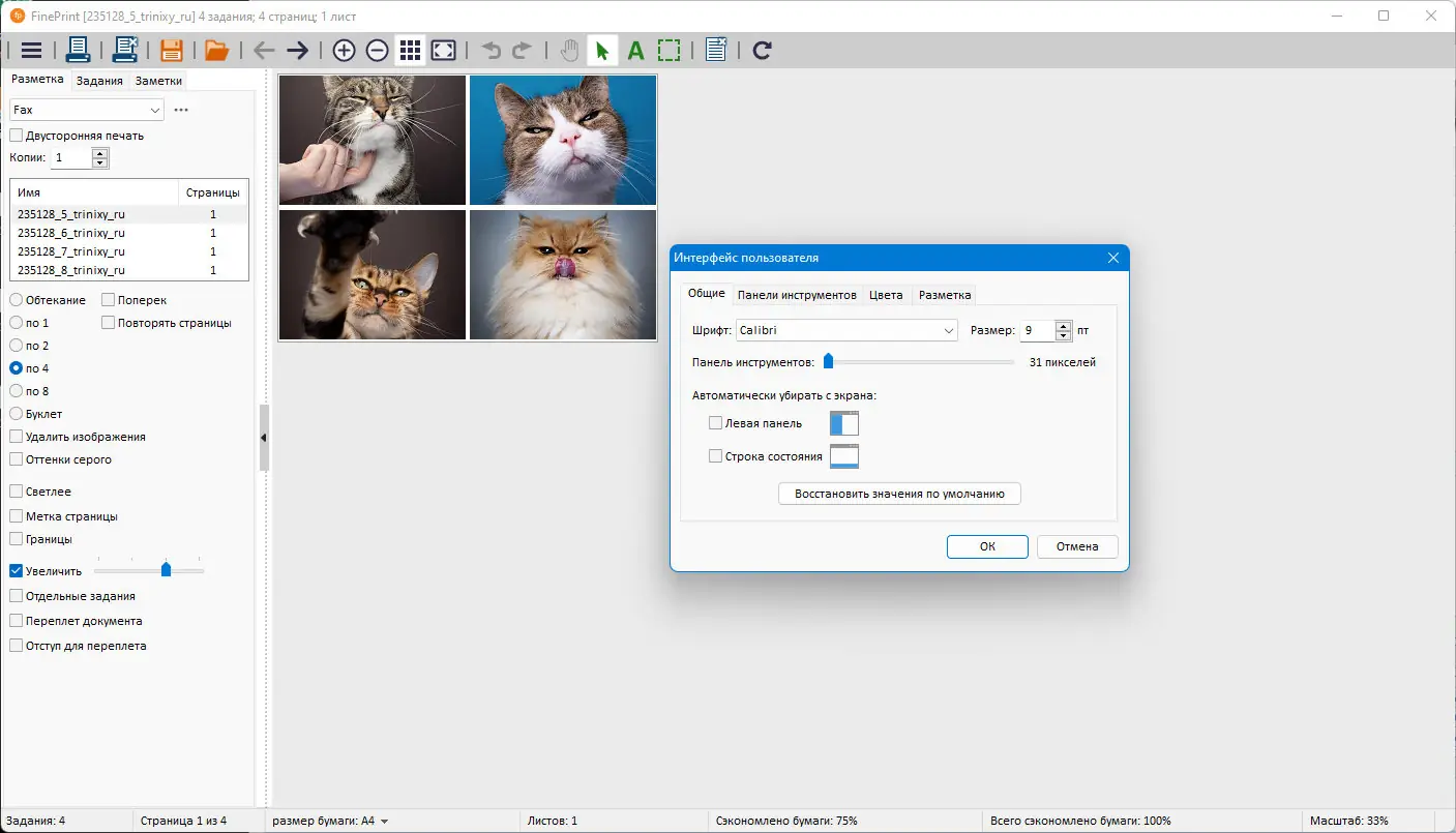 - Печать нескольких страниц на одном листе для экономии бумаги.