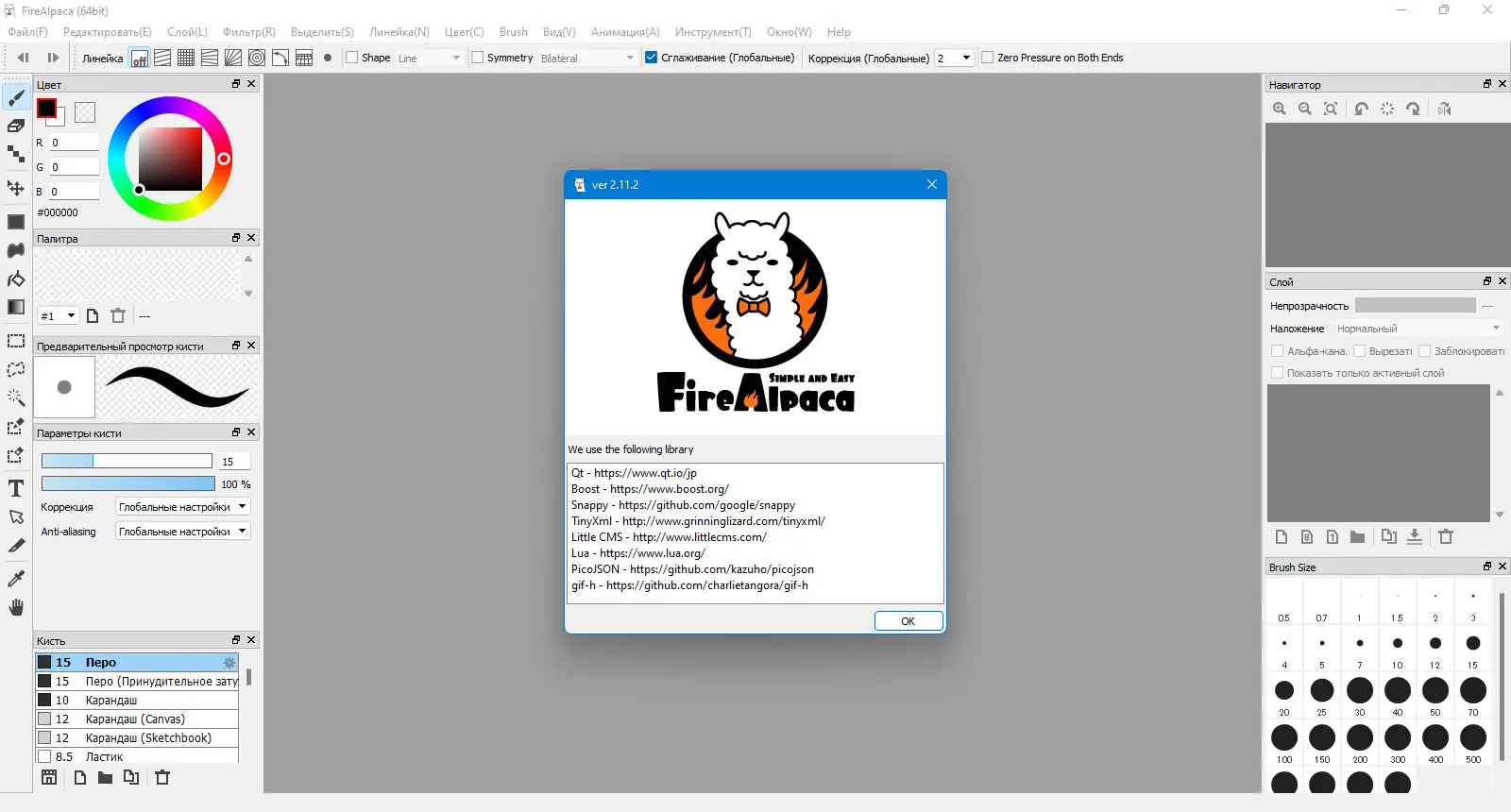 FireAlpaca — это компактный и удобный графический редактор, предназначенный для обработки изображений и создания цифровых рисунков. Программа поддерживает работу со слоями, предлагает набор базовых инструментов для рисования и коррекции, а также совместимость с популярными форматами. Подходит как для новичков, так и для пользователей, ищущих лёгкое решение для повседневных задач в области графики.