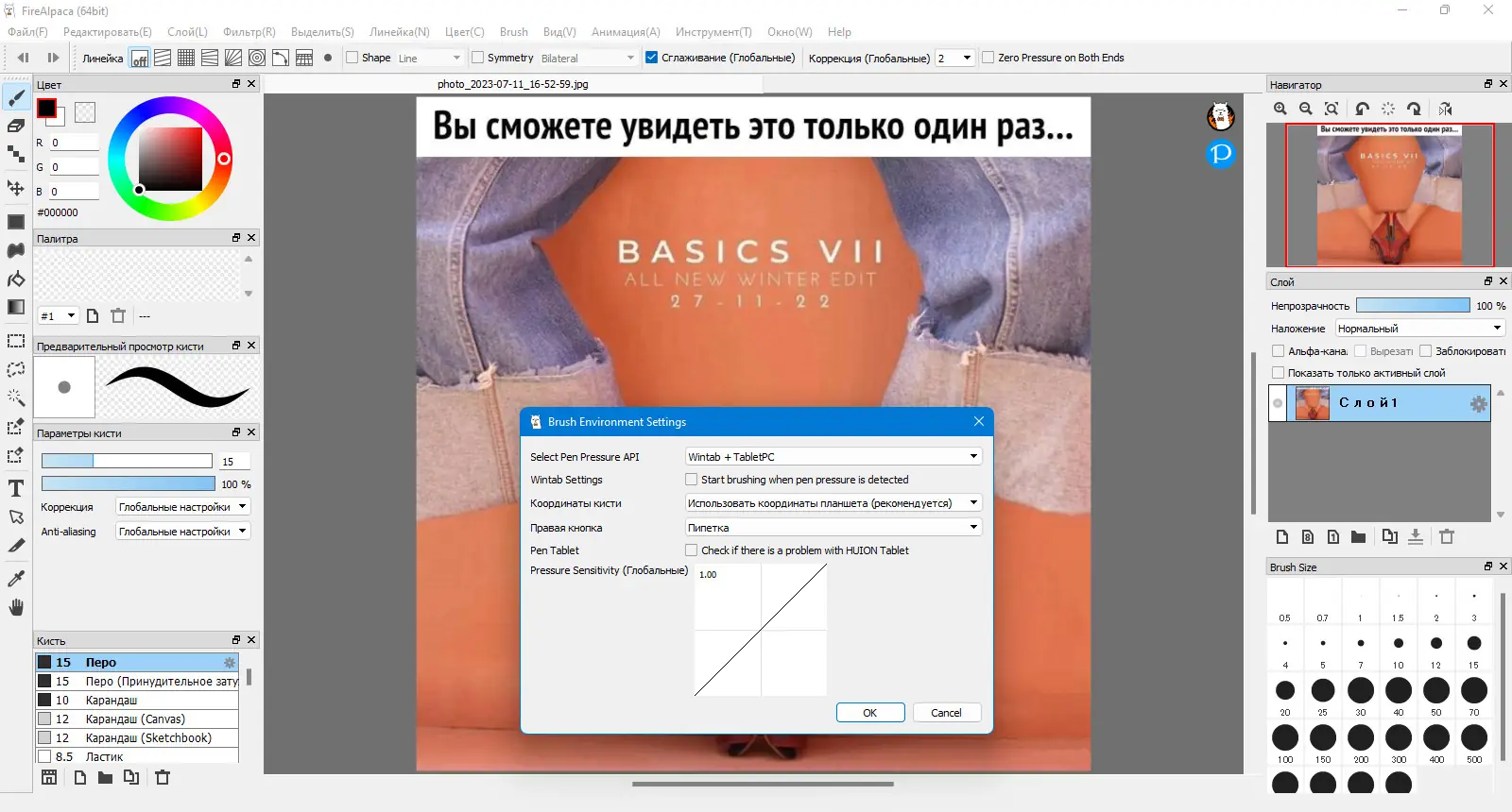 - Поддержка графических планшетов и корректная работа с давлением пера.
