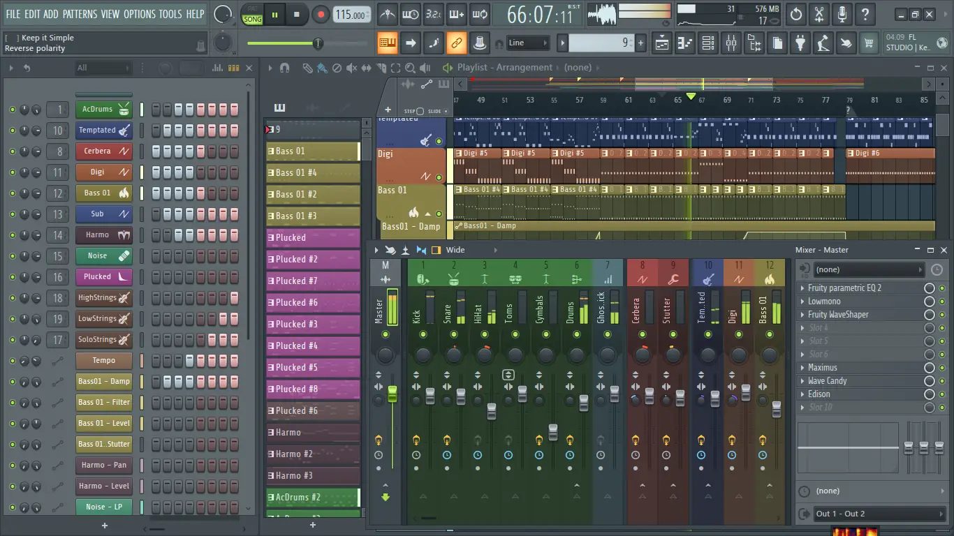 Программа отличается высокой стабильностью, глубокой настройкой и широким функционалом, что делает её предпочтительным выбором для множества музыкантов. Архитектура FL Studio позволяет использовать её как в качестве основной DAW, так и в качестве плагина в других хостах. Наличие встроенных инструментов, таких как 3xOSC, FLEX и Serum (в более поздних версиях), обеспечивает богатую палитру звуков. Однако из-за специфического интерфейса новичкам может потребоваться время на освоение всех возможностей.