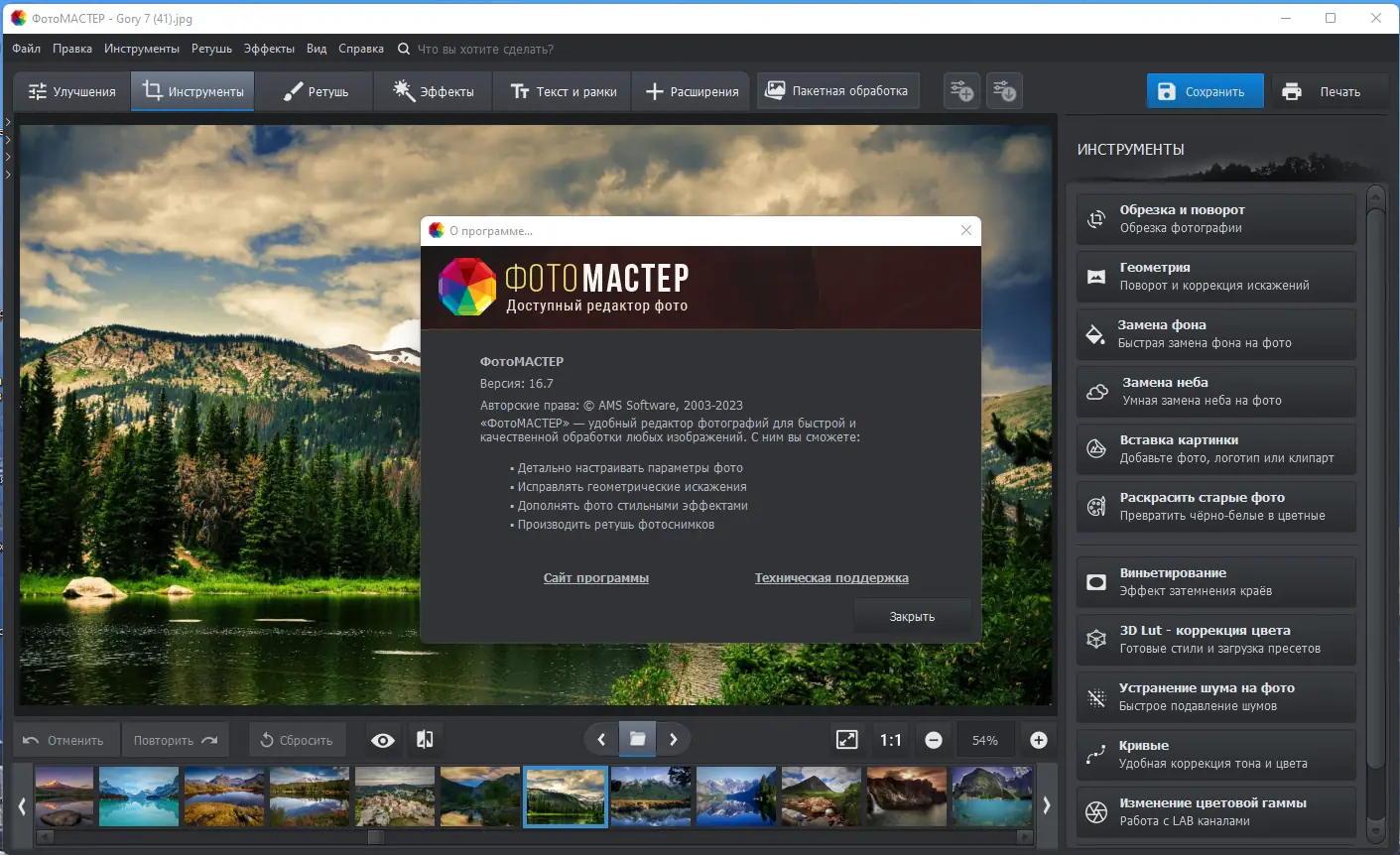 ФотоМАСТЕР представляет собой многофункциональный редактор графики, ориентированный на пользователей любого уровня. Он поддерживает широкий спектр форматов изображений и предлагает продвинутые алгоритмы обработки, сохраняя исходное качество. Архитектура приложения позволяет отменять действия в любом порядке, что делает процесс редактирования гибким и безопасным.