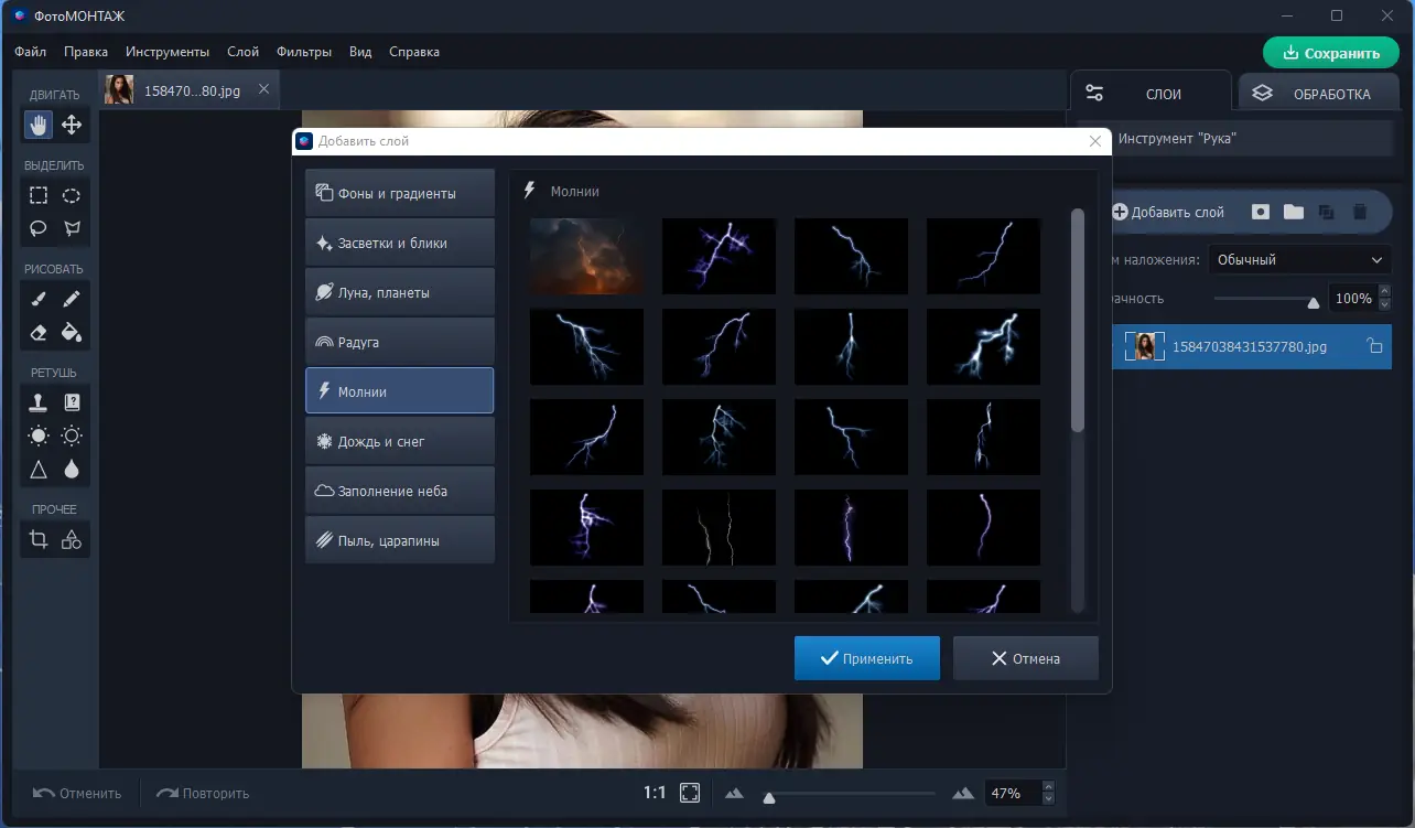 После установки программа открывается с понятным рабочим пространством, разделённым на панели инструментов, слои и превью. Для замены фона достаточно выделить объект с помощью инструмента «Магический контур» и вставить новое изображение. Ретушь проводится с помощью кистей dodge и burn — они позволяют осветлять и затемнять участки кожи, подчёркивая черты лица. Для сложных композиций используется наложение слоёв с регулировкой прозрачности и применением масок. Автоматические режимы коррекции помогут быстро улучшить качество тусклых фотографий, после чего можно внести ручные правки. Все действия выполняются в одном окне, что ускоряет процесс редактирования.