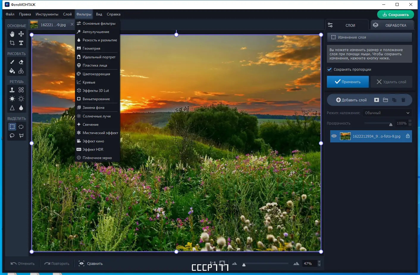 ФотоМОНТАЖ — это мощный редактор фото с поддержкой слоев, позволяющий создавать реалистичные фотомонтажи, улучшать качество снимков и проводить профессиональную ретушь. Программа включает более 180 объектов, текстур, фильтров и 3D LUT, а также инструменты для автоматической и ручной коррекции тона и освещения.